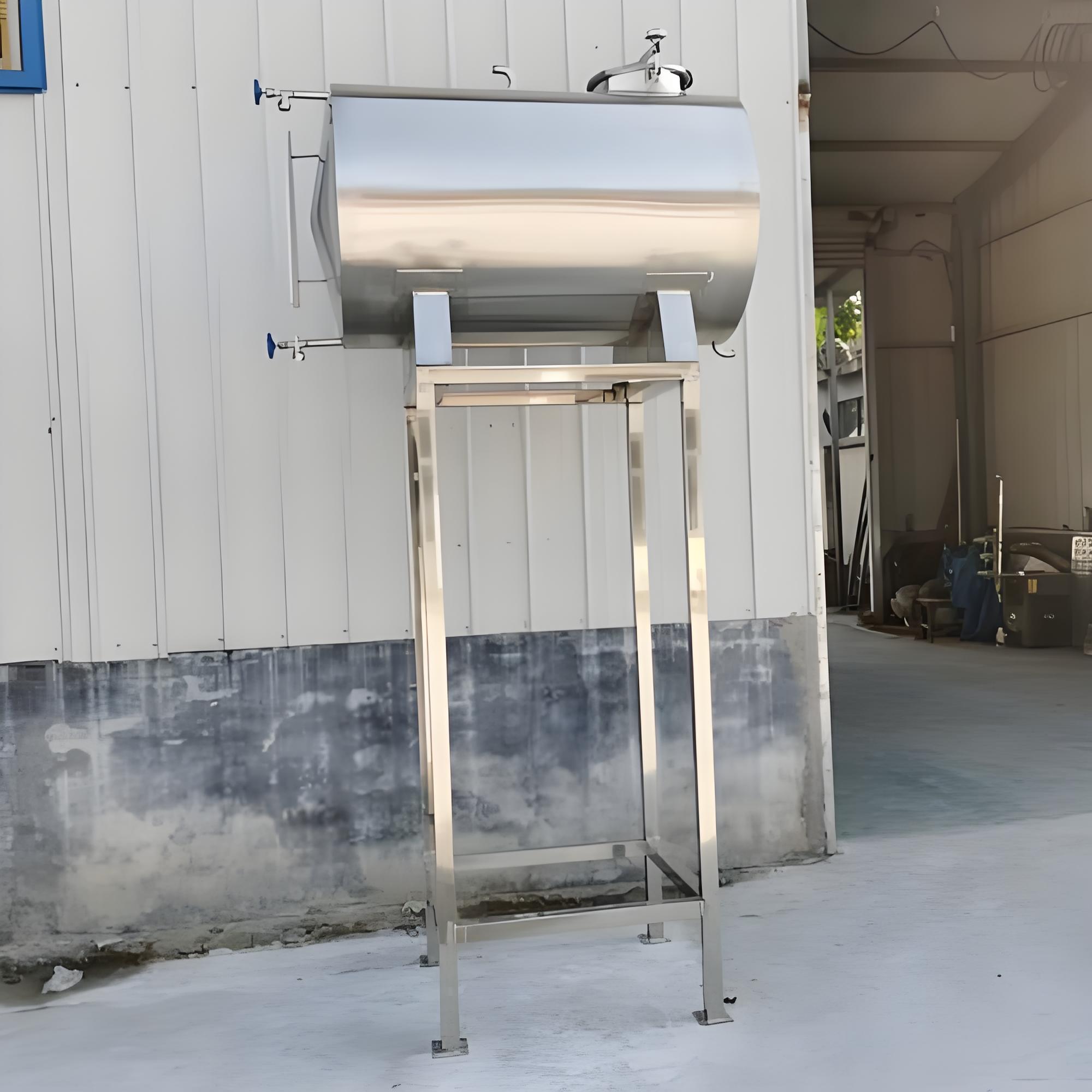 由不銹鋼材質(zhì)(如 304、316L)制成,具有耐腐蝕、易清潔的特點(diǎn),罐體上方設(shè)進(jìn)料口,底部設(shè)出料口,側(cè)面設(shè)液位計(jì)接口(如玻璃管液位計(jì)、磁翻板液位計(jì))。